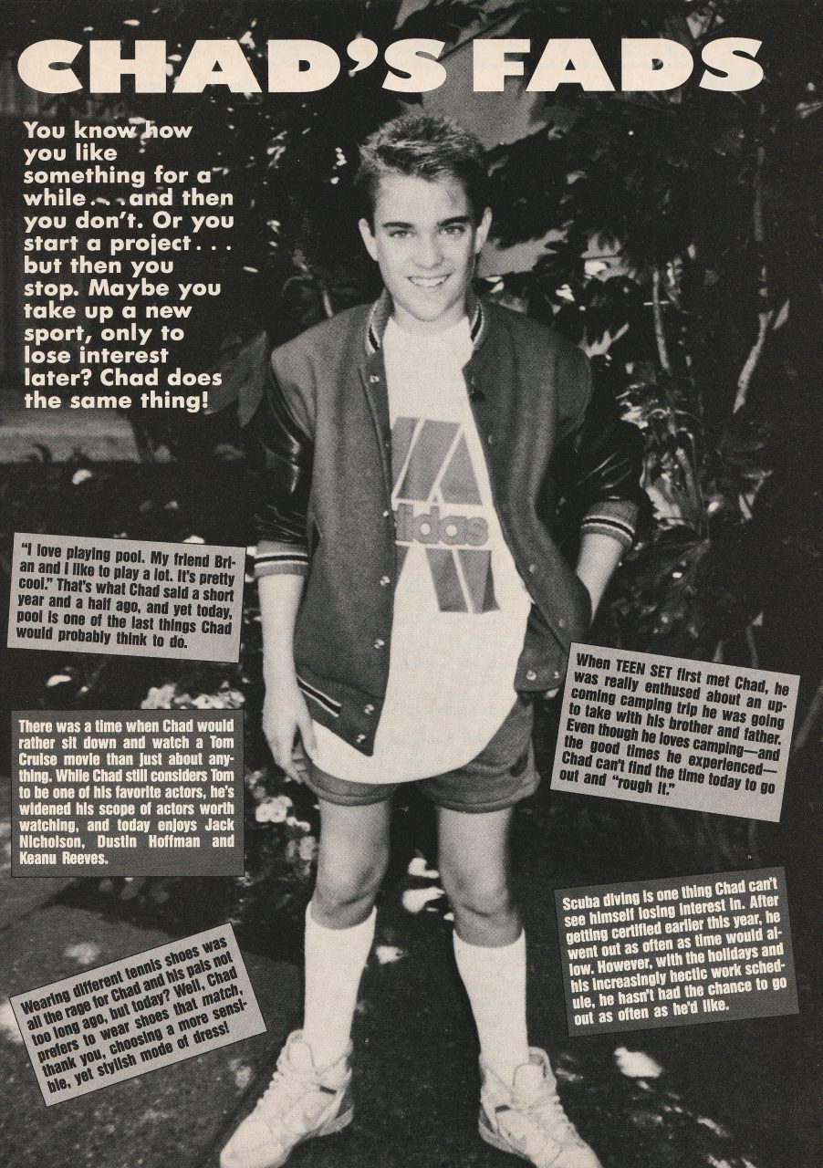 Chad Allen teen magazine pinup clipping shorts legs Teen Set Fads Pix Young