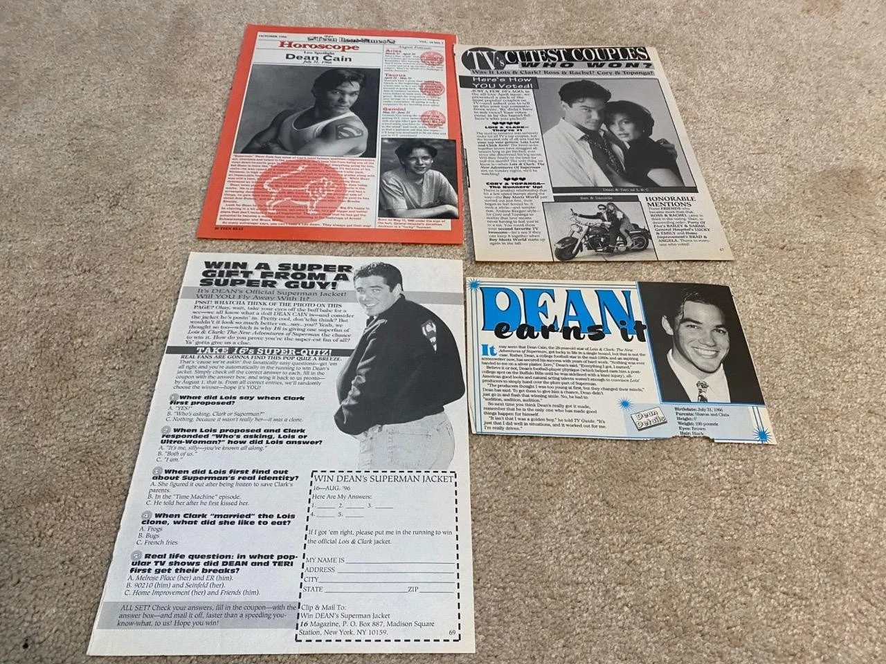 Dean Cain teen magazine pinups clippings lot Bop Teen Beat Tiger Beat Superteen