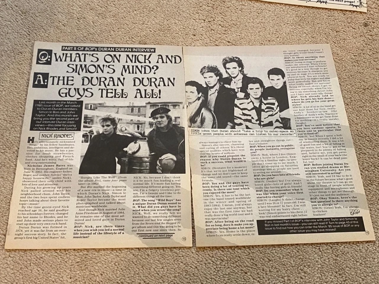 Duran Duran teen magazine pinup clipping Tell All Teen Beat Tiger Beat Dream Guy