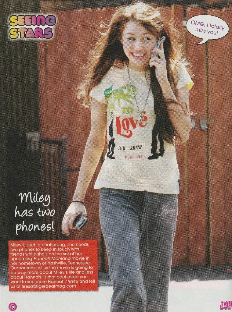 Miley Cyrus Demi Lovato teen magazine pinup clipping black jeans cell phone pix