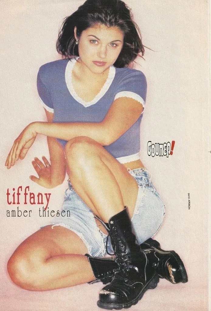 Tiffani Amber Thiessen teen magazine pinup clipping Japan jean shorts boots Bop